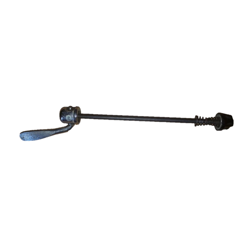 Attache rapide de roue Shimano, longueur de la tige 165 mm, 2 ressorts fournis, occasion en bon état, quelques rayures.