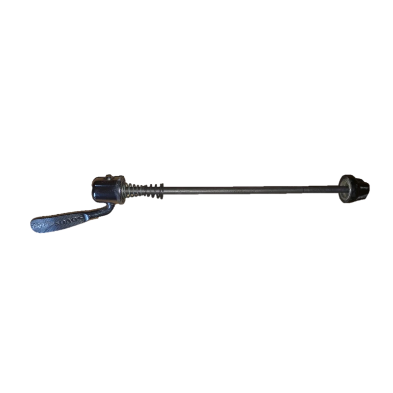 Attache rapide de roue Sovos, longueur de la tige 165 mm, 2 ressorts fournis, occasion en bon état, quelques rayures.