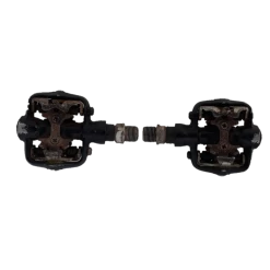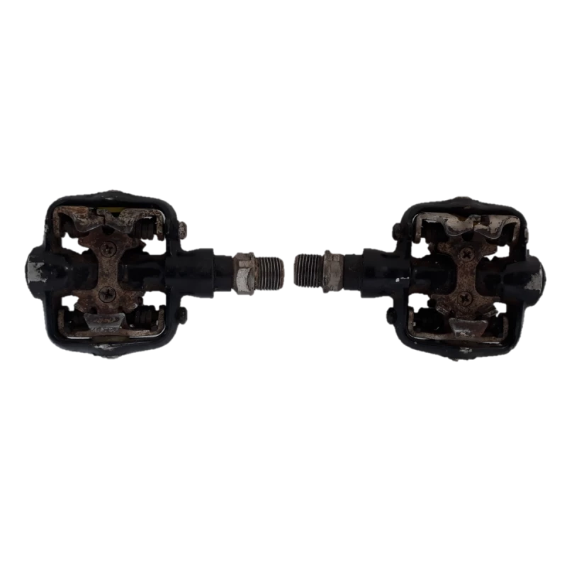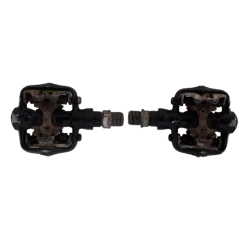 Pédales FPO, occasion en mauvais état (jeu mineur dans l’axe de la pédale gauche, pas de jeu dans la pédale droite, traces d’oxydation)