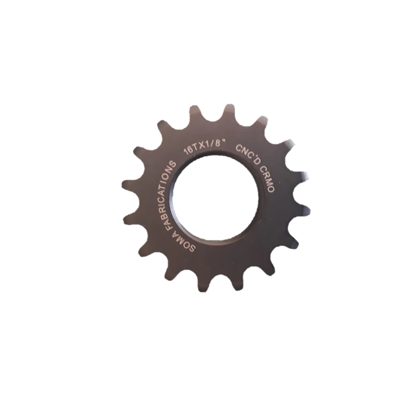 Pignon fixe Soma pour piste, fixie, single speed, BMX, 16 dents, filetage BC1.37″x24T, matière: cromoly traitĂ© contre les frottements et l’usure, pour une chaine 1/8″, couleur: noire. Il est neuf dans son emballage