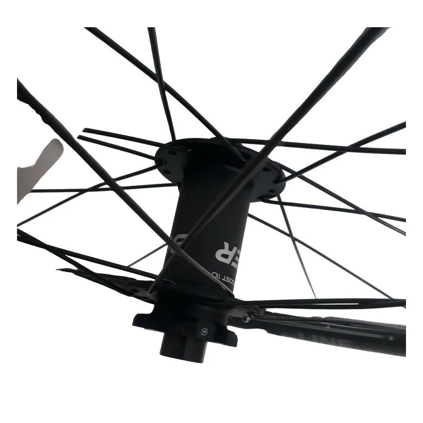 - les flasques de moyeu plus larges Boost, 110 mm de largeur, pour un axe diamĂštre 14.8 mm, amĂ©liorent l’angle d’incidence pour un roue plus rigide