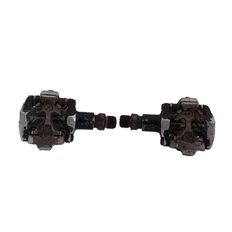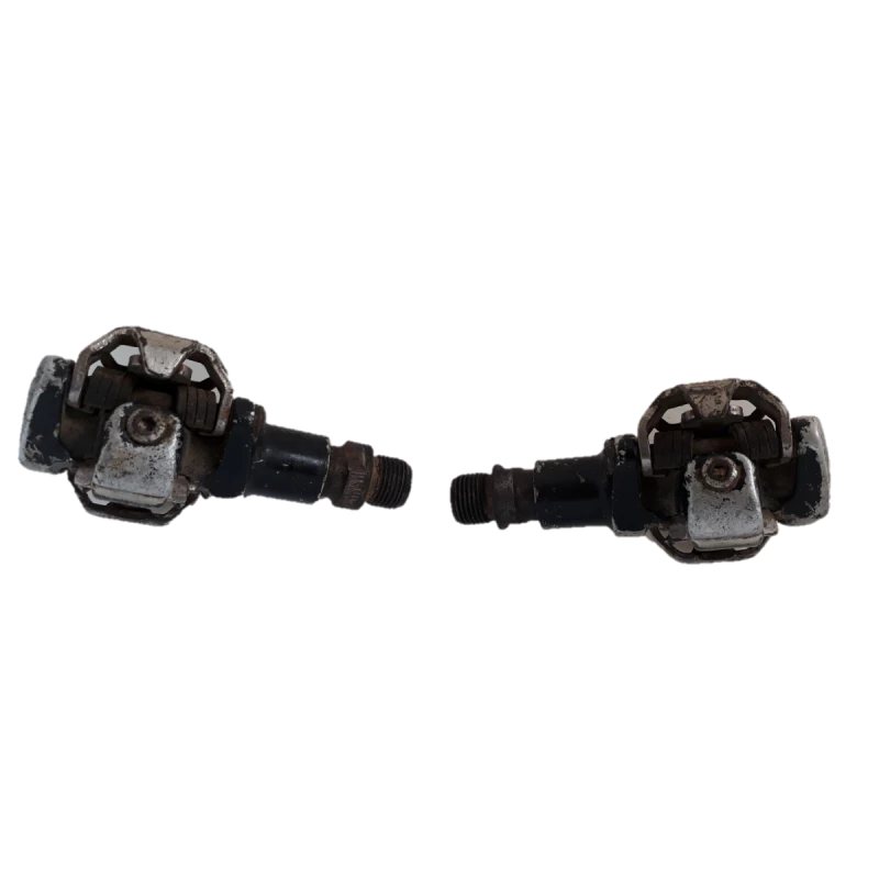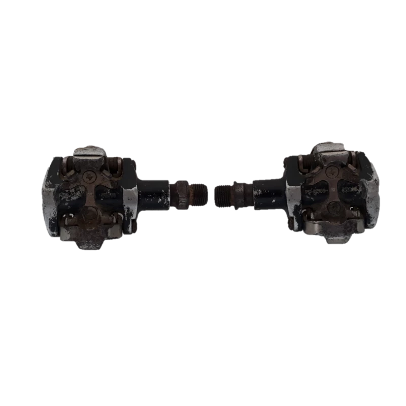 Pédales Shimano PD-M505, occasion pour pièces (jeu important dans l’axe de la pédale droite, jeu mineur dans l’axe de la pédale gauche)